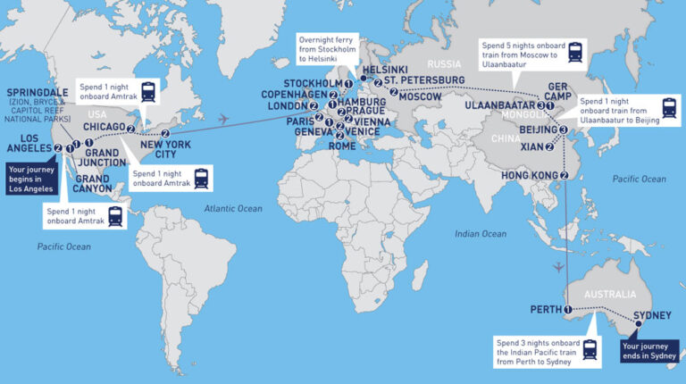 Railbookers is offering a unique new Around the World by Rail holiday, encompassing the USA, Europe, Russia, Mongolia, China and Australia.