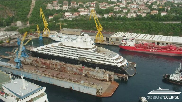 Scenic Luxury Cruise & Tour’s maiden luxury cruise ship, Scenic Eclipse, has been moved from the troubled Uljanik Shipyard in Pula, Croatia. The vessel has repositioned to the Viktor Lenac facility on the Croatian Adriatic coast, approximately 130 kms to the east.