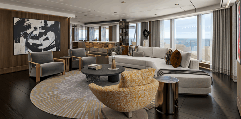 In the latest big reveal ahead of the December 2026 launch of Seven Seas Prestige, Regent Seven Seas Cruises has unveiled the new ship’s Skyview Regent Suite – described as the largest all-inclusive cruise ship suite in history.