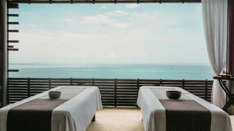Perched on the side of the Uluwatu cliff with a breathtaking view of the Indian Ocean, the Cliff Edge Spa Cabana offers a relaxing spa treatment, completely undisturbed except for the chirping of birds and the sound of the ocean waves crashing on the shore below.