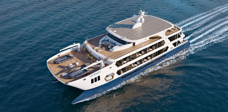 After a month and half of it sailing the Galapagos Islands, Hermes Mega Catamaran’s owner, Ecuadorian destination management company Via Natura, has released a tantalising look inside the striking superyacht.